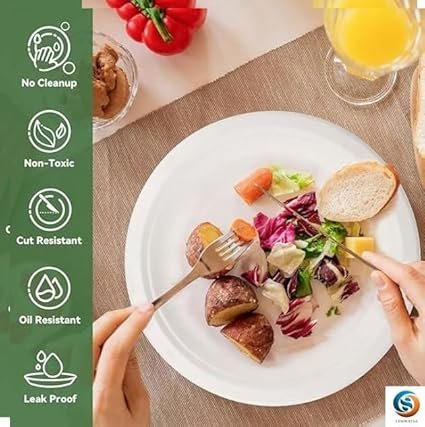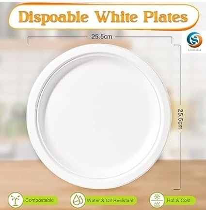 - [SPECIFICATION]-MATERIAL: Bagasse, SIZE: 25.5cm X 25.5cm (10 inch), COLOR: Off-White, SHAPE: ROUND, PACK OF: 25 pcs