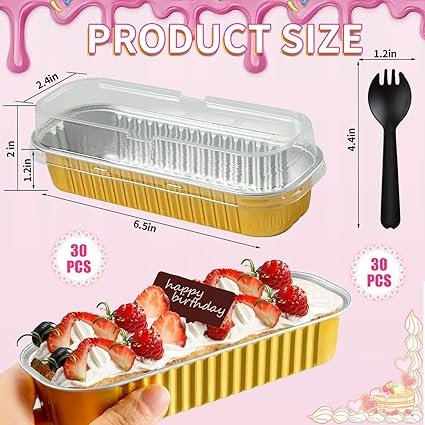 - 🧁 50Pcs All-in-One Set – Includes 50 gold mini loaf pans and 50 clear lids – perfect for parties, catering, and gifting.