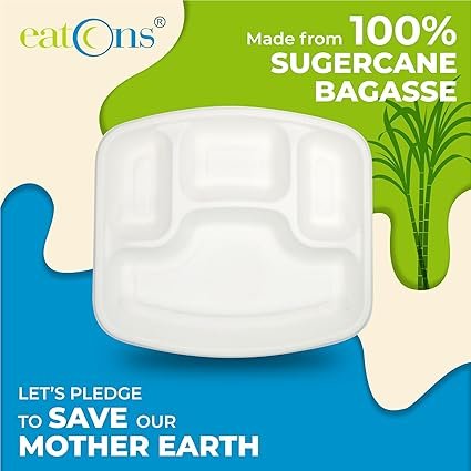 Be the first to review “EATONS 4-Compartment, 50 Pack Bagasse Meal Tray [10.5″x9.6″] Disposable Plates Big Size | Compostable Sugarcane Paper Plates | Thali, Birthday Party, Wedding Plates | Rectangular | White”