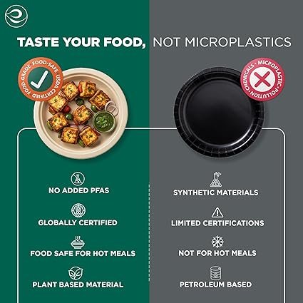 - Durable & Reliable: These compostable plates are strong, firm, and leak-resistant—ideal for serving samosas, sandwiches, or birthday treats. Enjoy your food without worrying about spills or soggy plates.