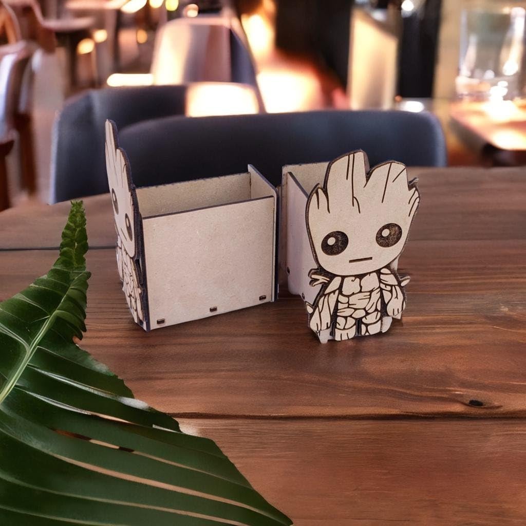 - Features a carefully carved Groot figure, complete with intricate details that capture the essence of the iconic character.
