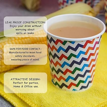 PARICOTT ( Pack of 50pcs 200ml Zigzag Printed Cup|Eco-Friendly Disposable Glasses Drinking Cups|Cocktail Cold Drink Juice Water Party Paper Cups for Hot & Cold Beverages, Pack, Multicolor