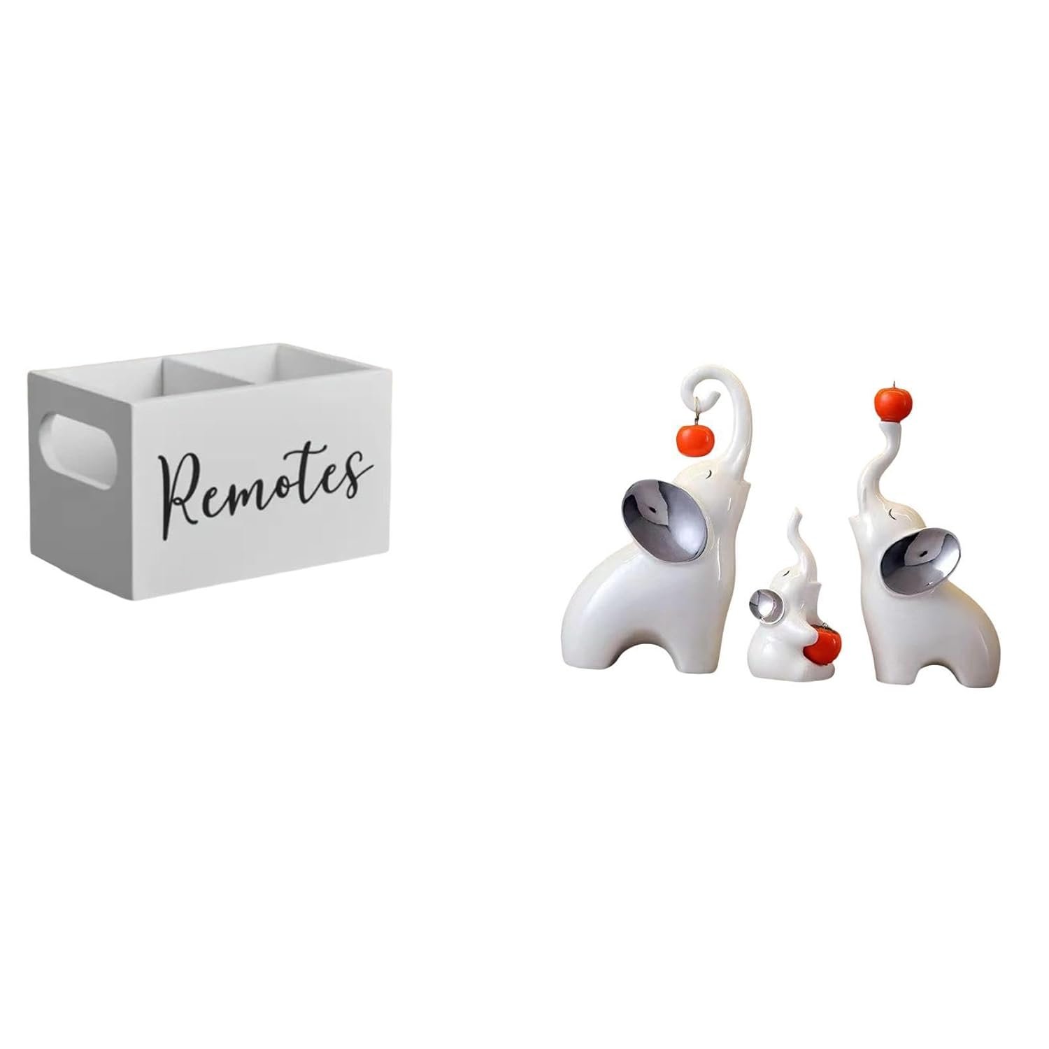 - Package Includes:1 Wooden TV Remote Holder 3 Elephant figurines